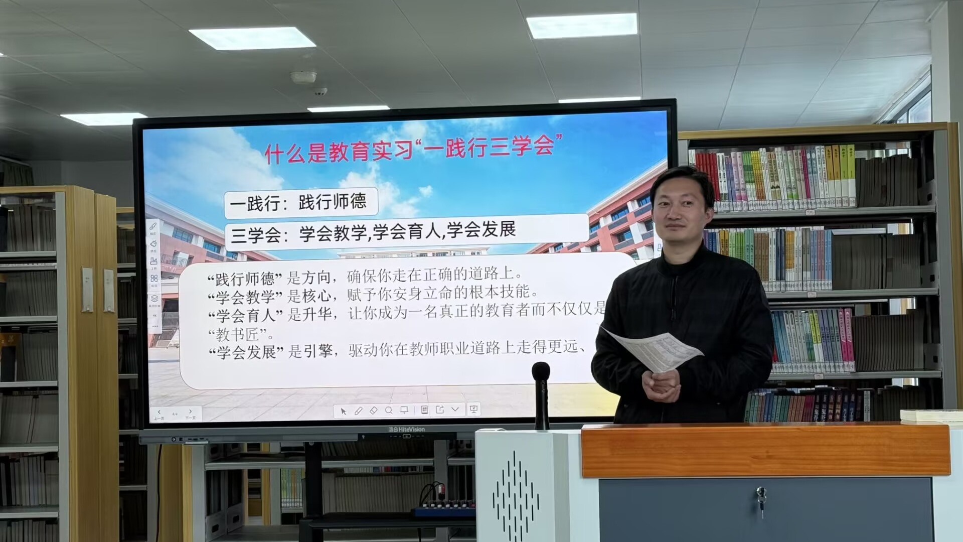 玉桂学校实习指导教师充分肯定同学们前半期的成长与进步,并鼓励大家以“一践行三学会”为指引,持续深化实践反思,不断提升教育教学能力,筑牢从教信念与育人情怀。