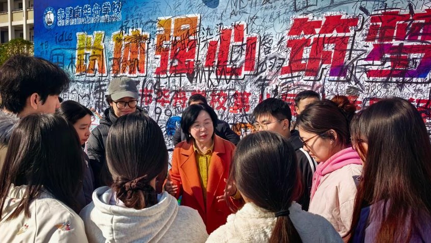 调研过程中,孙和平副院长与实习生们亲切交流,认真听取实践感悟与成长困惑。她对实习生展现的专业素养和实践成果予以充分肯定,并提出三点希望:一要筑牢安全底线,科学安排作息,以健康身心投入教育实践;二要聚焦教学主业,深入践行“一践行三学会”要求,在课堂实战中提升专业能力;三要注重实践反思,将鲜活案例转化为研究素材,实现毕业论文与教育实践的有效衔接。